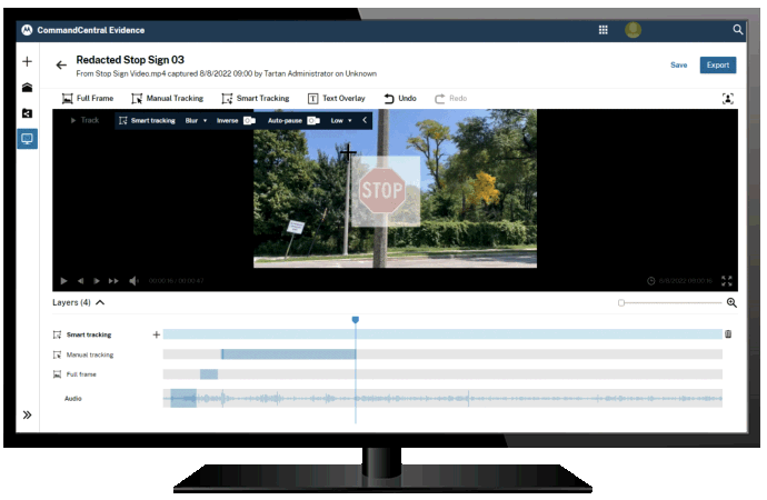 CommandCentral Evidence includes native redaction tools, integrated with your case management workflows, so evidence never has to leave the system.