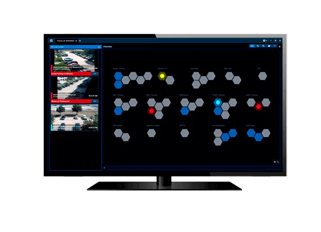 Focus of Attention (FoA) introduces a new concept in video monitoring and brings to the user a more intuitive way to consume information about potential security events. Easily identify where action is required with potentially critical video activities identified by color-coded hexagons so you can focus on what’s important.